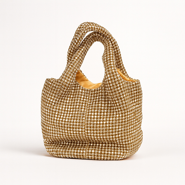 MS Ladies Bag Bridal Bucket Bag in Silver Checks - Weight:
