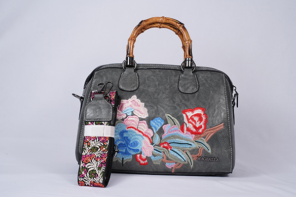 MS Ladies Bag Bridal Handbag Grey Flower Art Work Colour