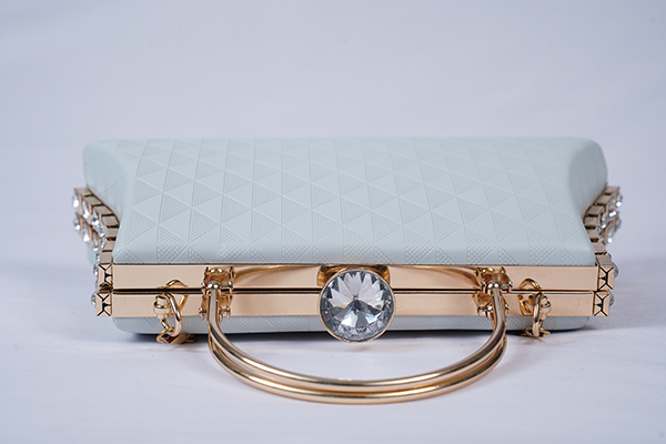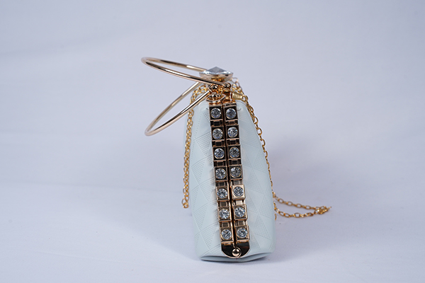 Clutch Bag in Silver Shade with Gold Chain