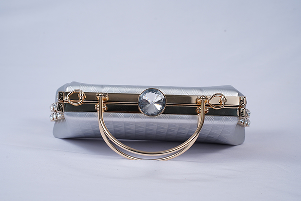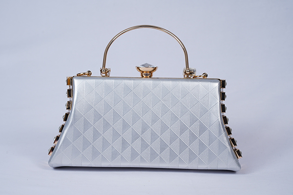 MS Ladies Bag Clutch Bag in silver with Gold Chain - Weight: